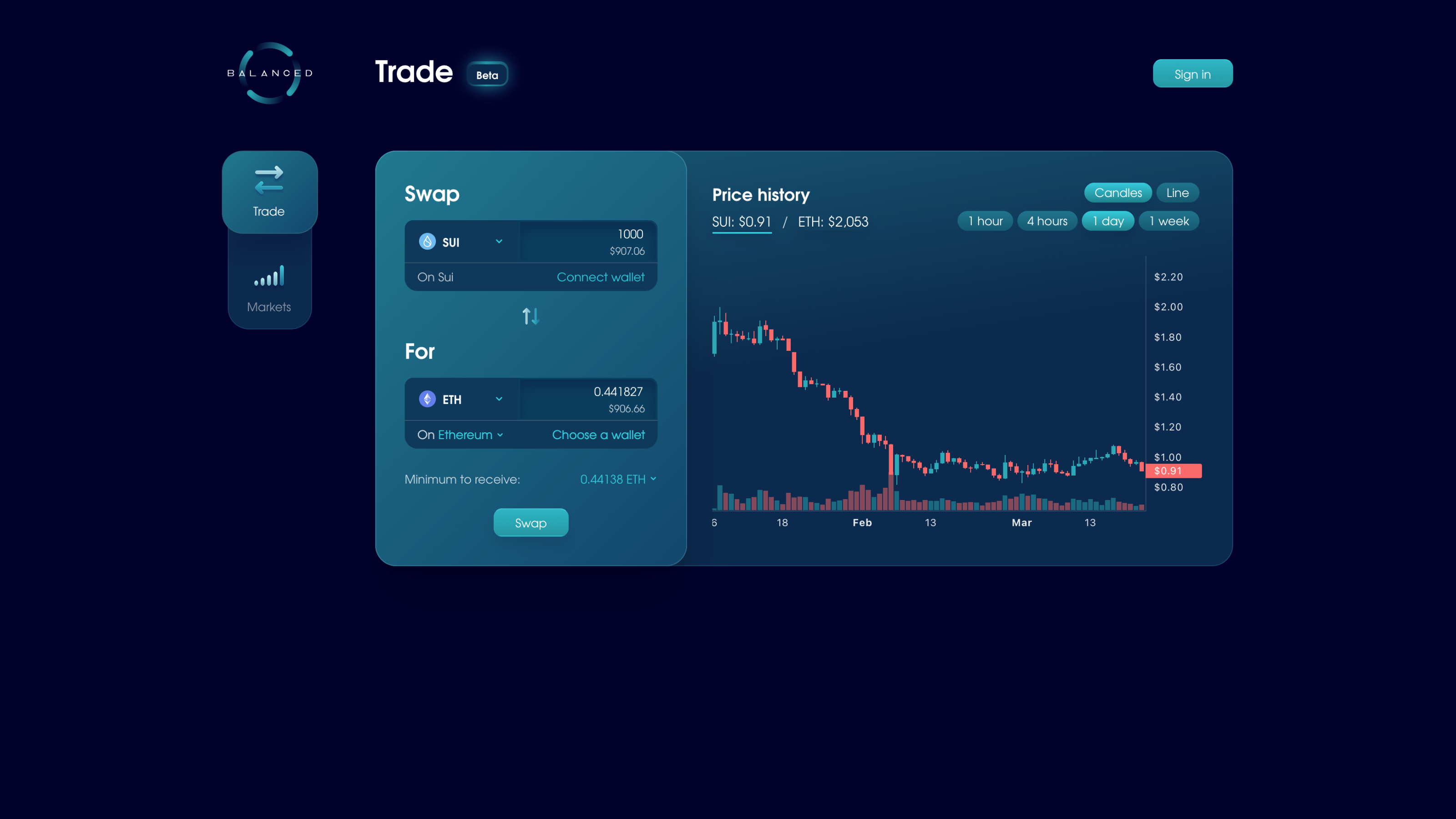You can use Balanced on Sui to trade, transfer crypto cross-chain, and borrow bnUSD against SUI.